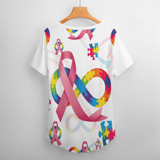 #375 New V Neck Autism/Breast Cancer Awareness Short-sleeve Women Shirt